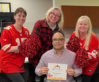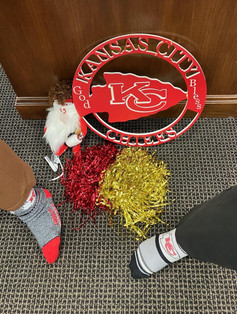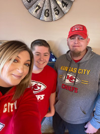 Amanda Schmalz | 1WP | Superstition: My husband and I need to watch the game at separate houses. Both times we did, they won. Only time we did together, they lost! I also always wear my momās Chiefs earrings. |