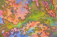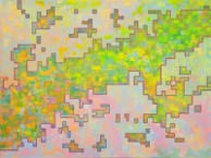 Gadbois embraces the bold use of color. Employing fluorescent acrylic underpainting, he elevates color saturation to address complex themes such as memory, climate change, the nuclear era, alternate reality, and artificial life.