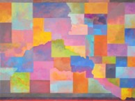 His latest series, “Boundary Lines,” delves into the demarcations of land, creating abstract paintings based on the shapes of counties that make up different states—a visual commentary on how the American landscape was divided and controlled.